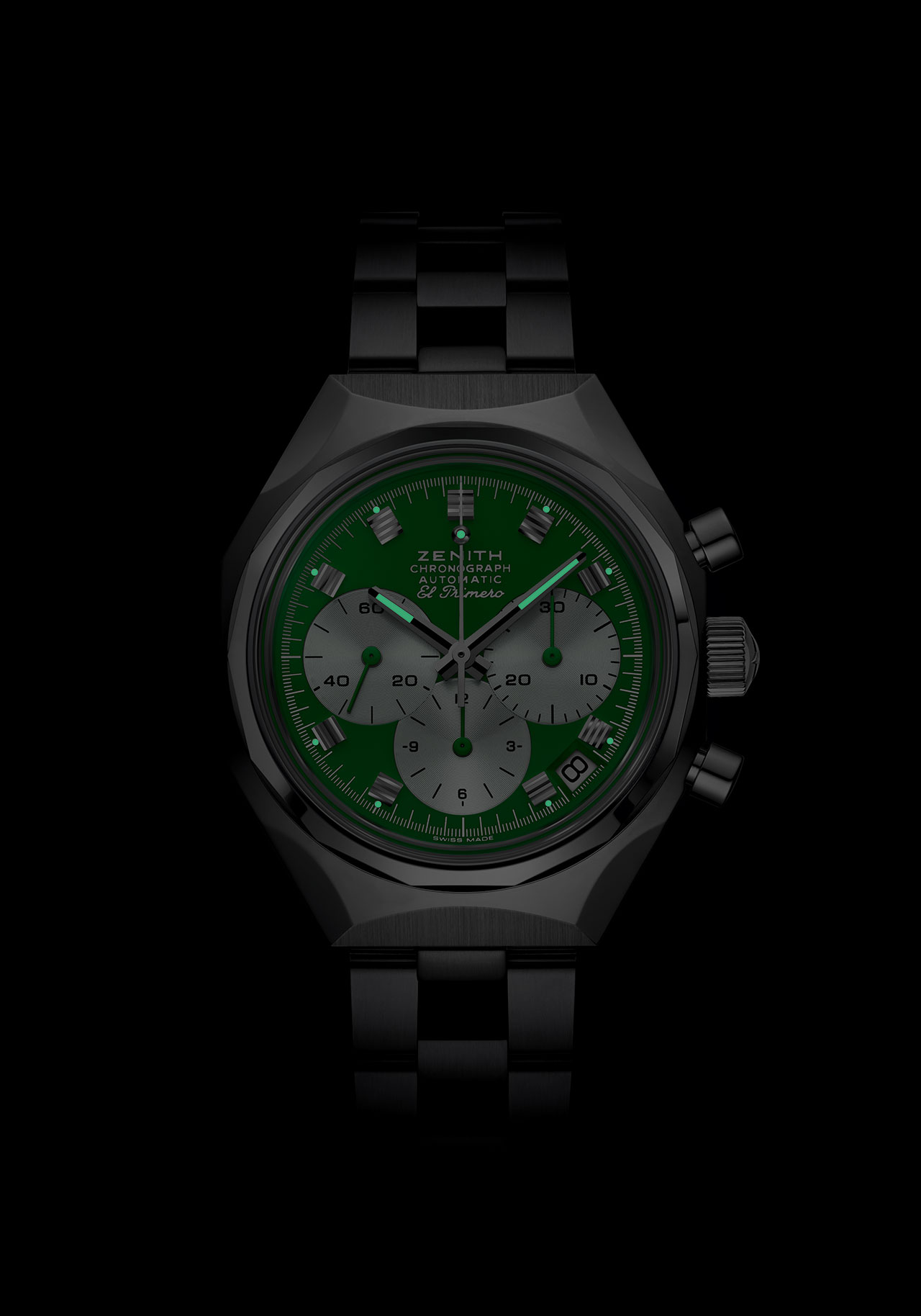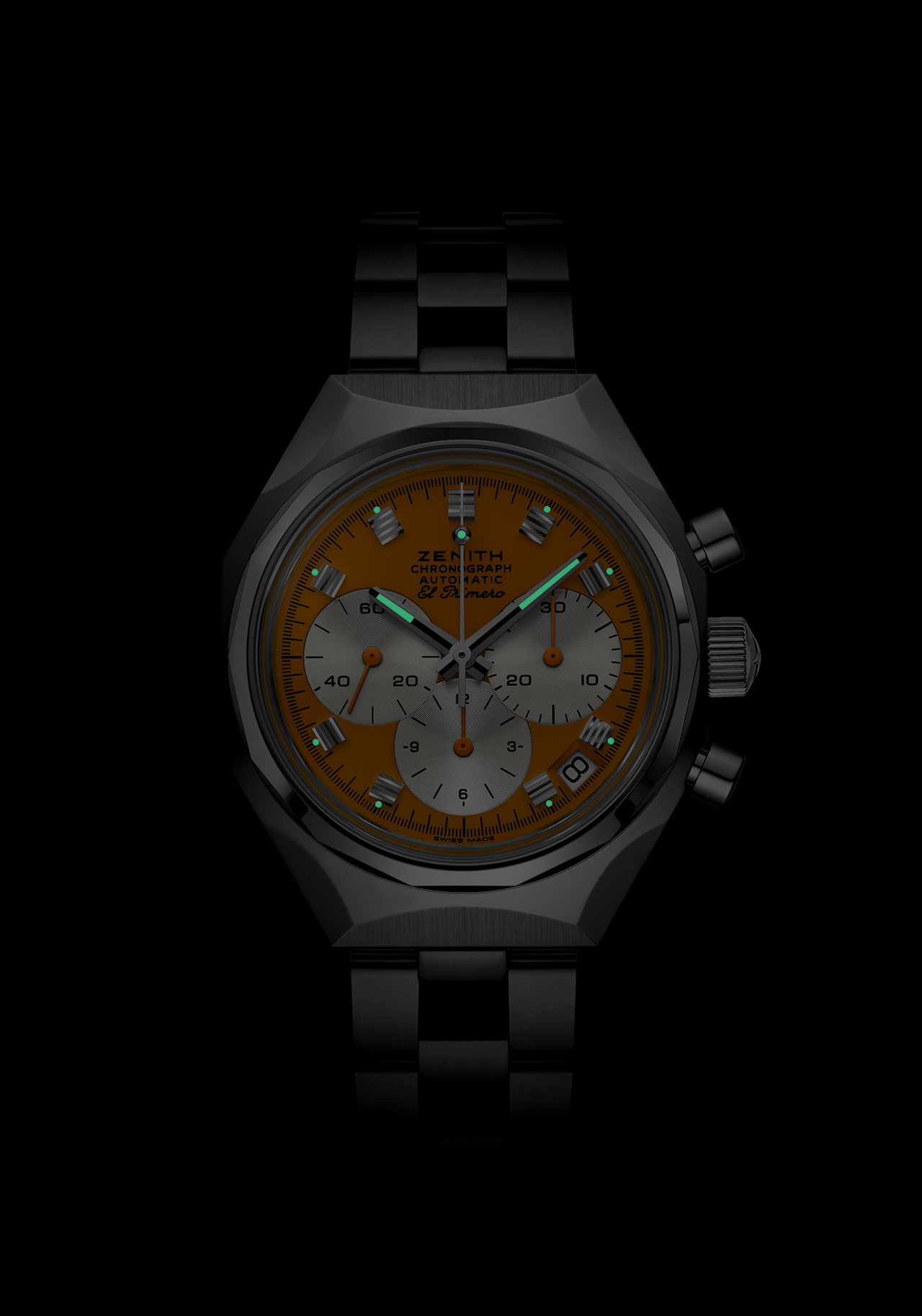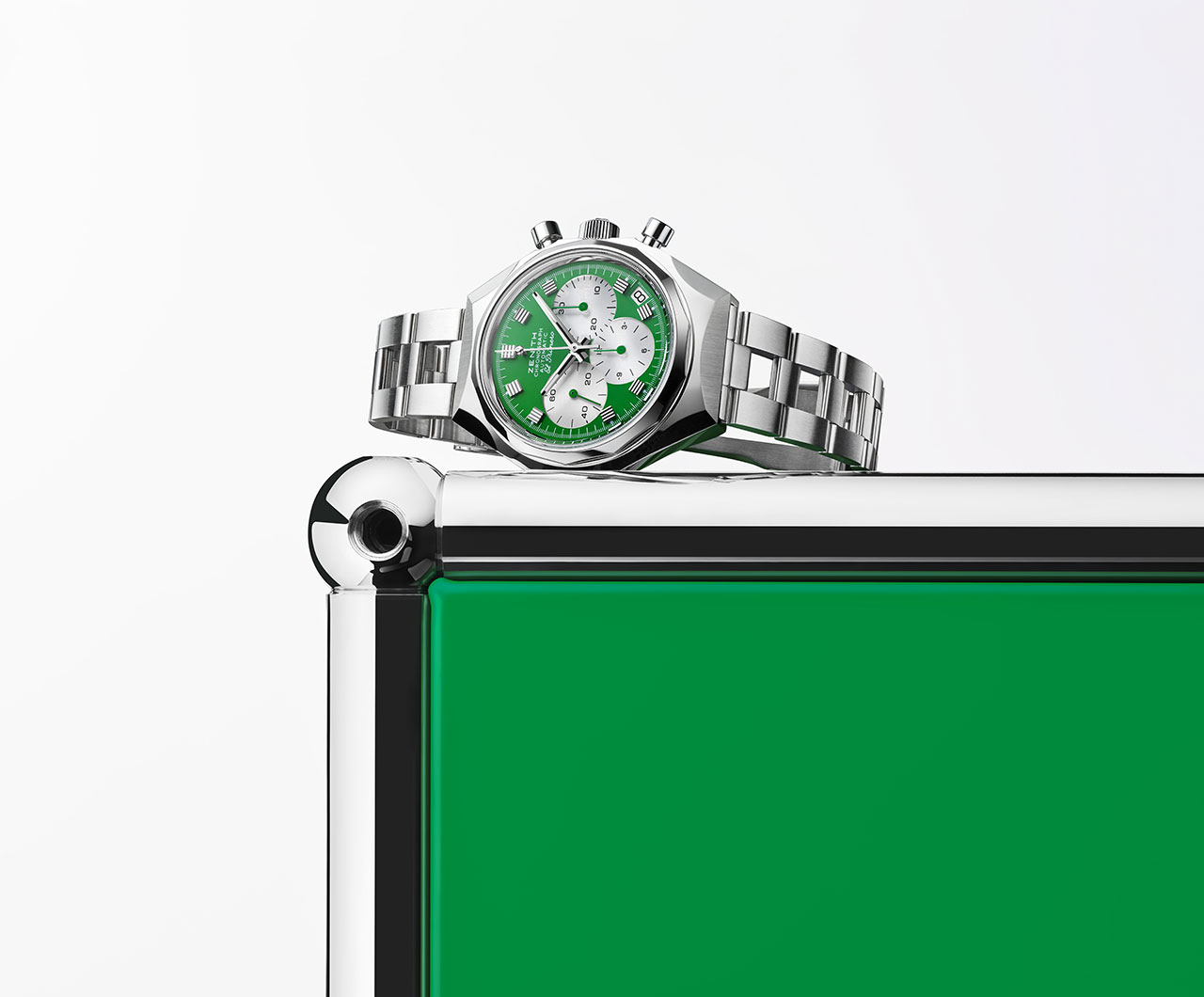 Celebrating the imagined convergence of these two iconic designs is the new DEFY Chronograph USM capsule watch collection. Available in emblematic Green, Golden Yellow, Gentian Blue, and Pure Orange – tones one might find adorning the panels that insert-into a USM shelf – the limited edition time pieces are encased in a 37.3mm stainless steel body with a bold 14-sided bezel and a signature Zenith “ladder” bracelet.