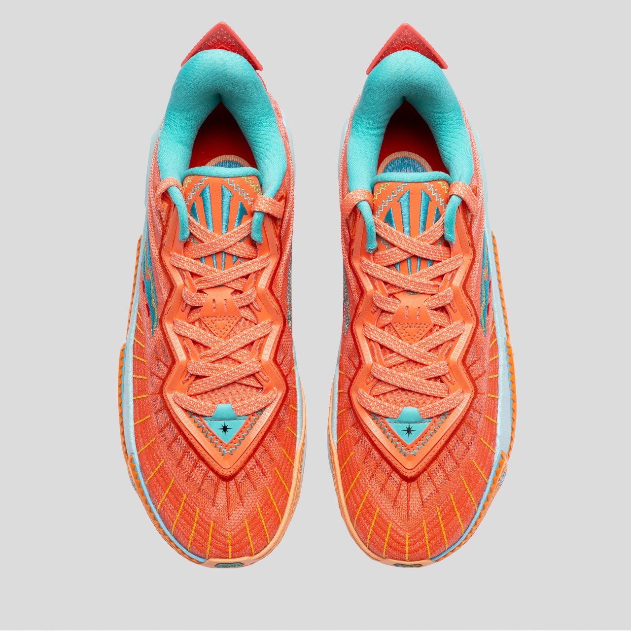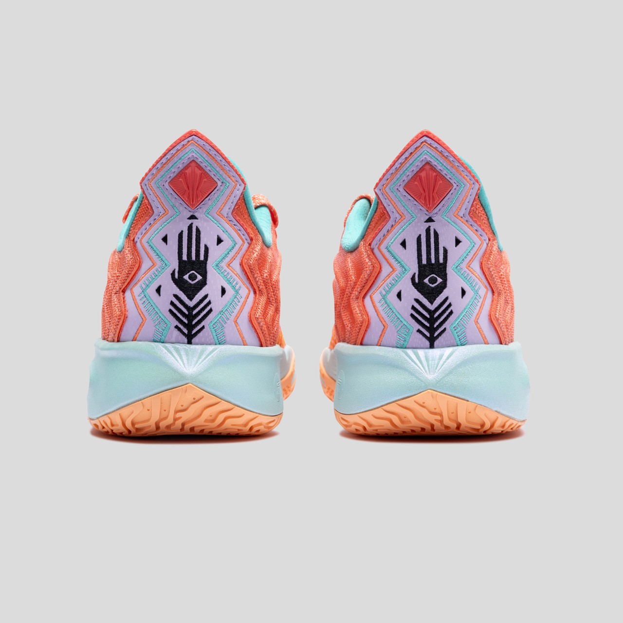 If the “White Phantom” is all about cool, quiet mystique, the Kai 2 “Sun” is its fiery, radiant counterpart. Drenched in a vibrant mix of daylight orange, solar ochre, and sky blue, this colorway channels Irving’s reverence for nature and the duality of the sun and moon. “I’ve always been moved by the glow of the rising sun,” shares Irving. “It reminds me to walk in faith, stay aligned with nature, and never take a single moment for granted. This colorway represents my belief that every day is a chance to rise again – and to speak truth with light.” With celestial textures, a zig-zag midsole mimicking sunlight on water, and a guiding hand icon on the heel, every detail is charged with intention. Worn daily, it becomes a symbolic reminder of hope, vitality, and the power to begin again.