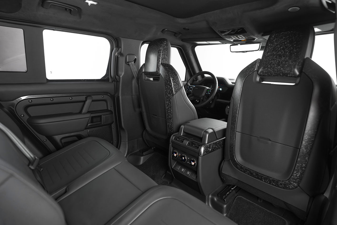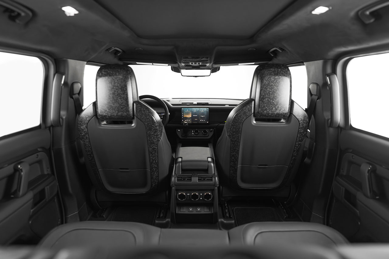 Every detail has been taken into close consideration, nothing has been left to chance. The interior back trunk wall has also been rendered in the strengthened steel found throughout the car, even its fuel tank. The iconic runflat system tire, mounted to the Defender’s back trunk door is now fortified with solid polycarbonate inserts attached to the rims.