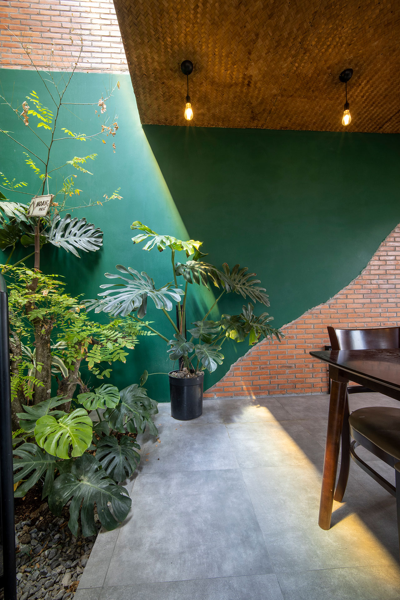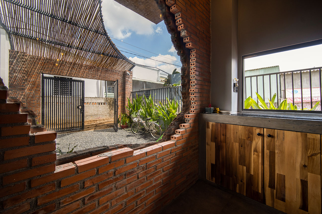 Built with a modest 603-square-foot layout, Noah’s Nest is designed to honor the owner’s roots while leaning into modern Vietnamese architecture. Rather than relying on imported, industrial materials, the home showcases locally sourced elements such as baked clay bricks, bamboo poles, straw mats traditionally used in rice storage, and ornamental stone mortars. These choices go beyond aesthetic appeal – they ground the home in the cultural fabric of the Mekong Delta, paying tribute to Tiền Giang’s agricultural identity.