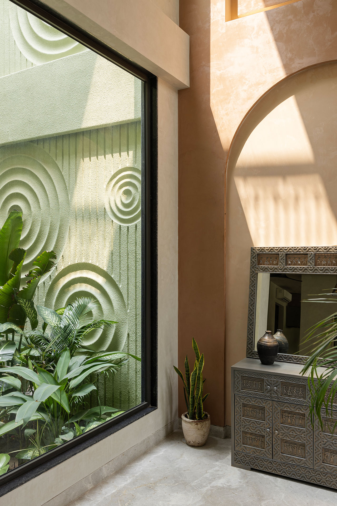 The design weaves courtyards into the overall layout, allowing daylight and breezes to fill the interiors. These open-air pockets bring greenery indoors and become an active part of the family’s life, ushering in calm and offering views that change with the seasons.