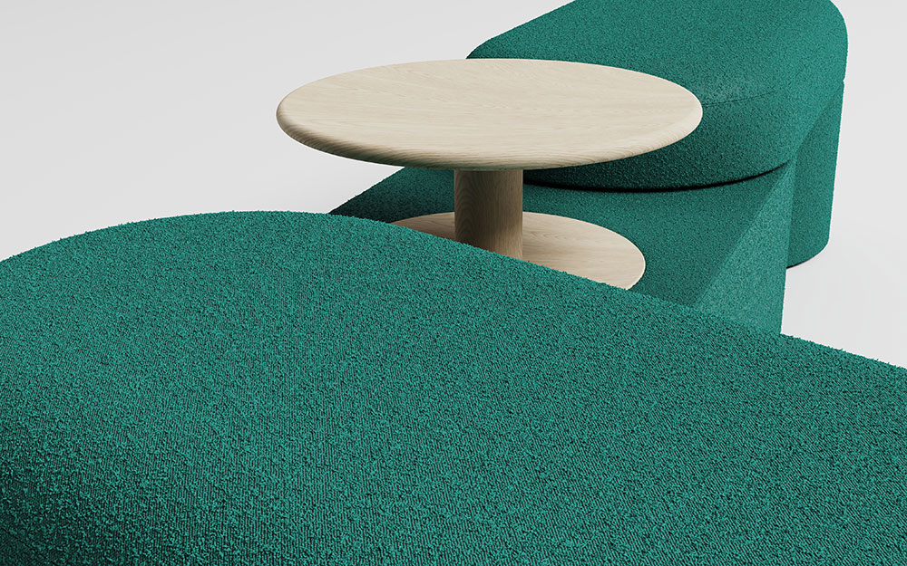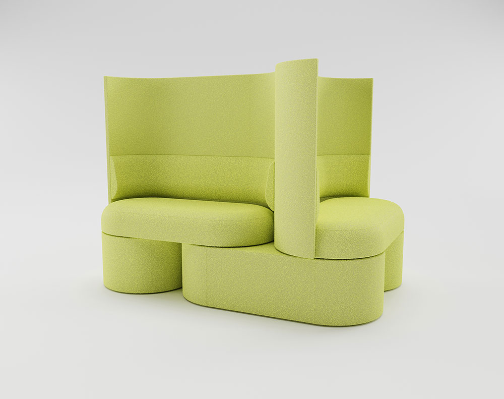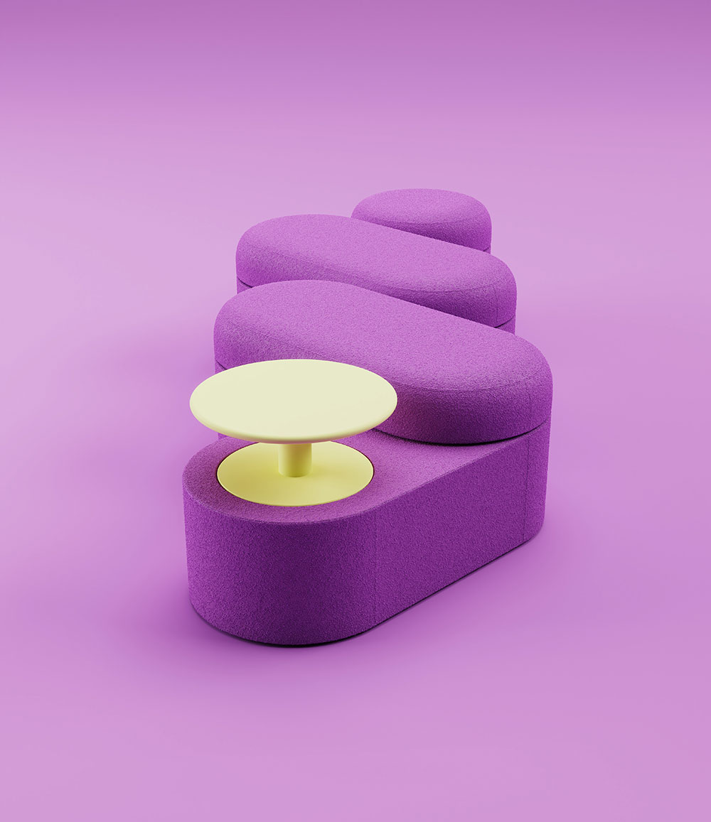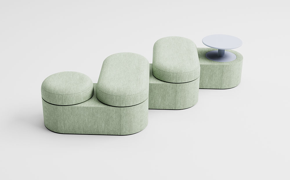 Tate is a designer’s kit of parts that includes cushions, base beams, and tables that snap together for quick assembly – no tools required. A patent-pending pivot connector allows clients to link, rotate, or reconfigure pieces with ease.