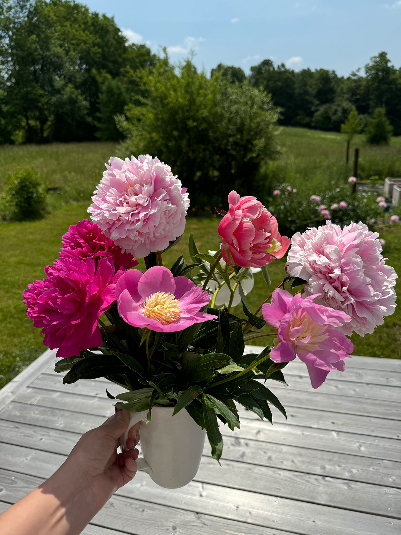 I spend a lot of time at my home in Upstate New York, where I love gardening. Peonies are my favorite flowers, they bloom in early summer, just as everything else is beginning to grow.