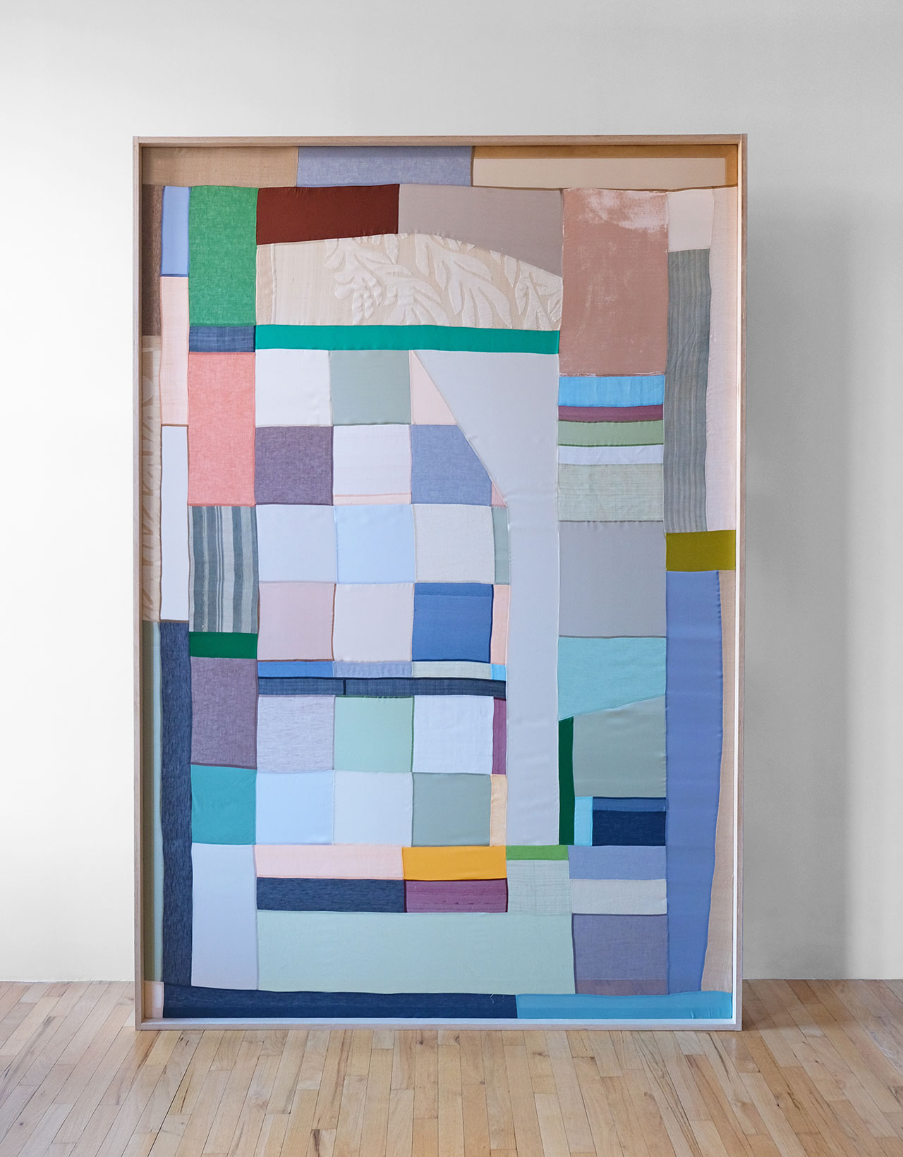 The artist splits her time between Manhattan and Upstate New York, where she brings painting and handmade textiles together in her multimedia practice. Foraged, archived, and collected, each material is a visual tool that she uses to convey personal and social histories.