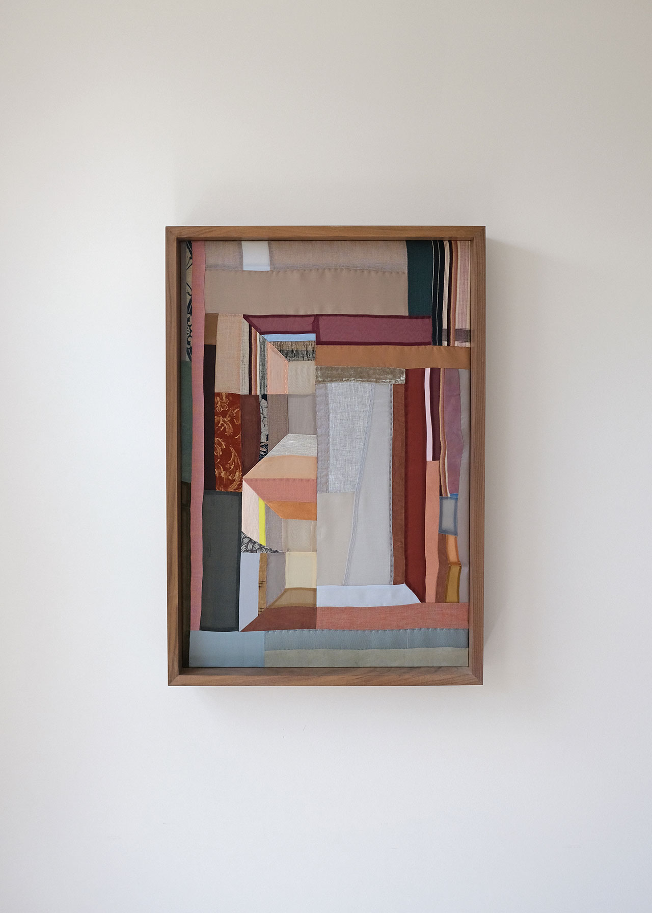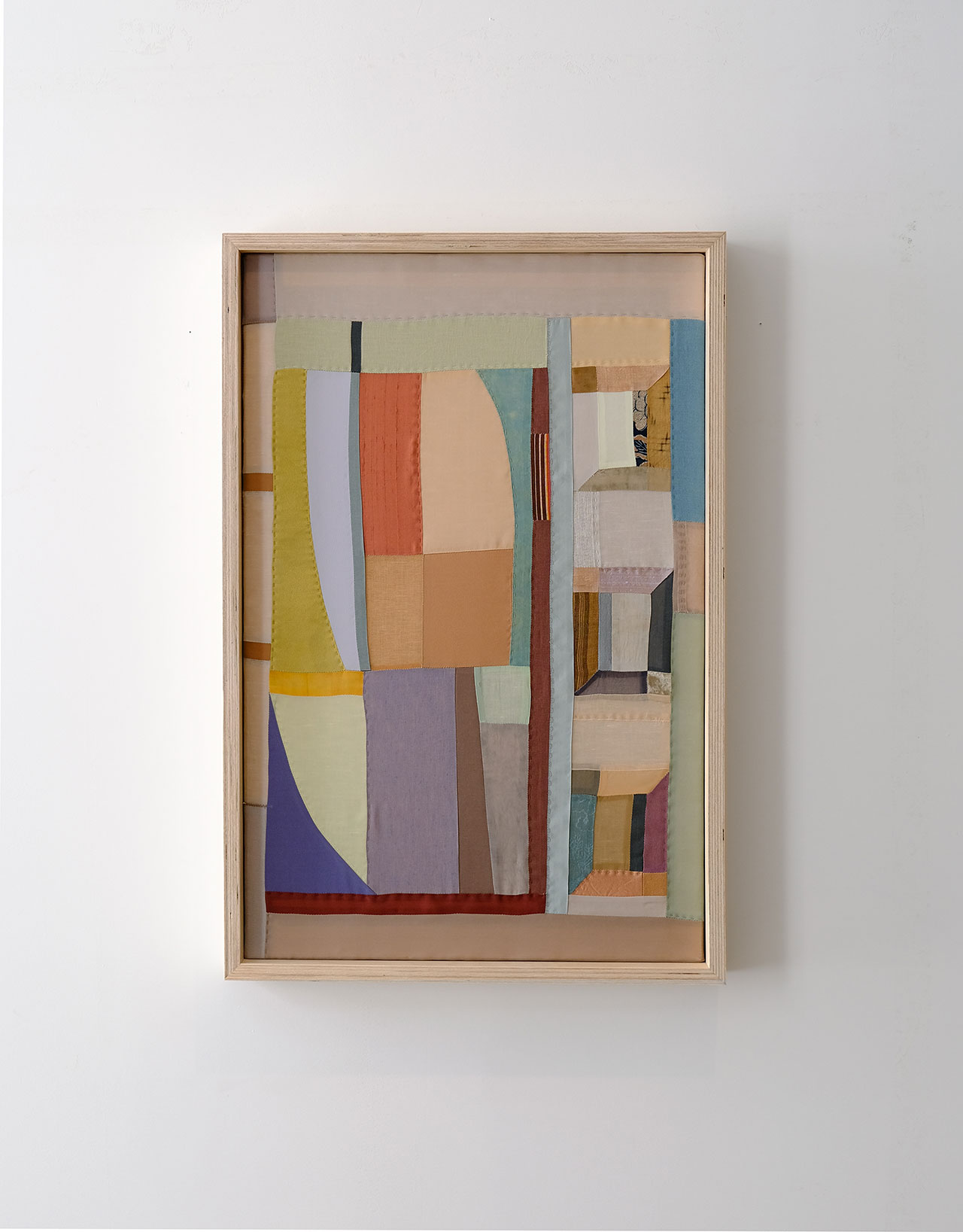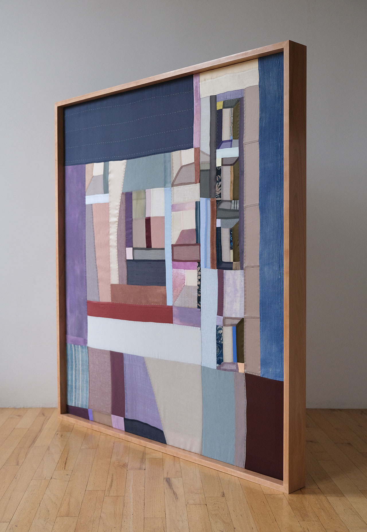 Afternoon Light Impression, 2001 \\\ Framed piecework fabric panel made from silk, naturally dyed and hand woven linen, cotton velvet, African mudcloth, and botanic appliqued antique textiles \\\ Photo: Courtesy of Kiva Motnyk