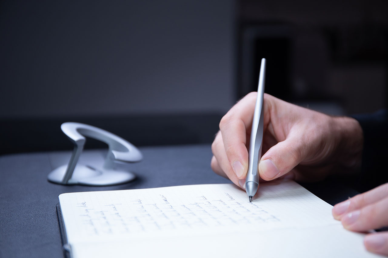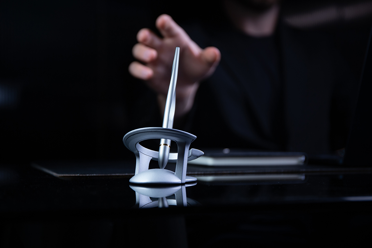 As an interactive kinetic sculpture in and of itself, the Novium Hoverpen Interstellar glides in flawless motion for up to 20 seconds with just the gentle twist of its tip. Surprisingly, this also serves a function, a psychological one at that. The repetitive movement allows one to relax for a moment and relieve stress by re-grounding themselves in the present.