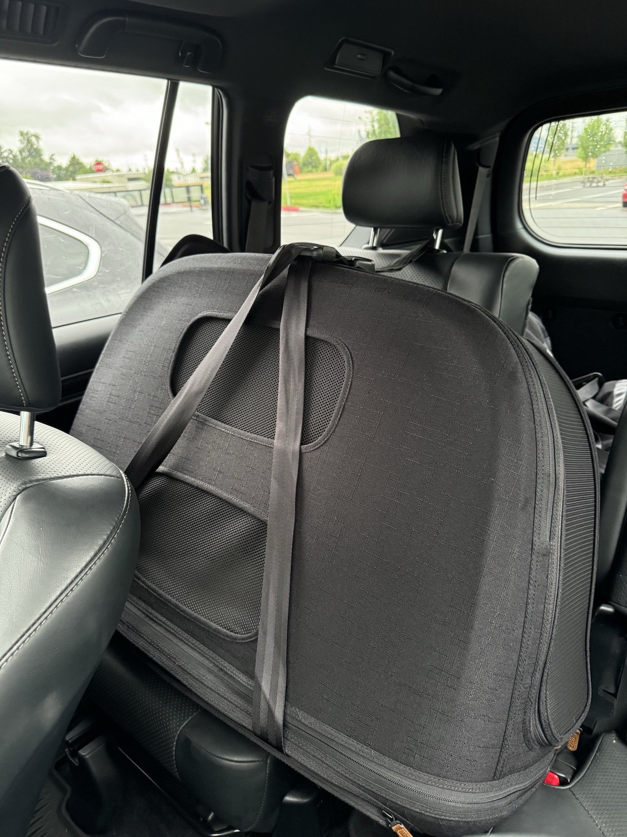 More than just a travel crate, Crispin has been meticulously engineered for safety, comfort, and convenience. Its tall profile and ventilated mesh panels create an airy, spacious environment, ensuring pets feel secure without feeling confined. Two machine washable mattress pads – one designed for plush comfort and the other for added durability – offer a practical solution for easy cleaning, so you can always have a fresh backup on hand. Prioritizing the same safety standards found in Nuna’s baby car seats, Crispin is free from flame-retardant chemicals; instead, it uses naturally flame-resistant fabrics. Subtle details, like vegan leather accents, add a refined touch of style.