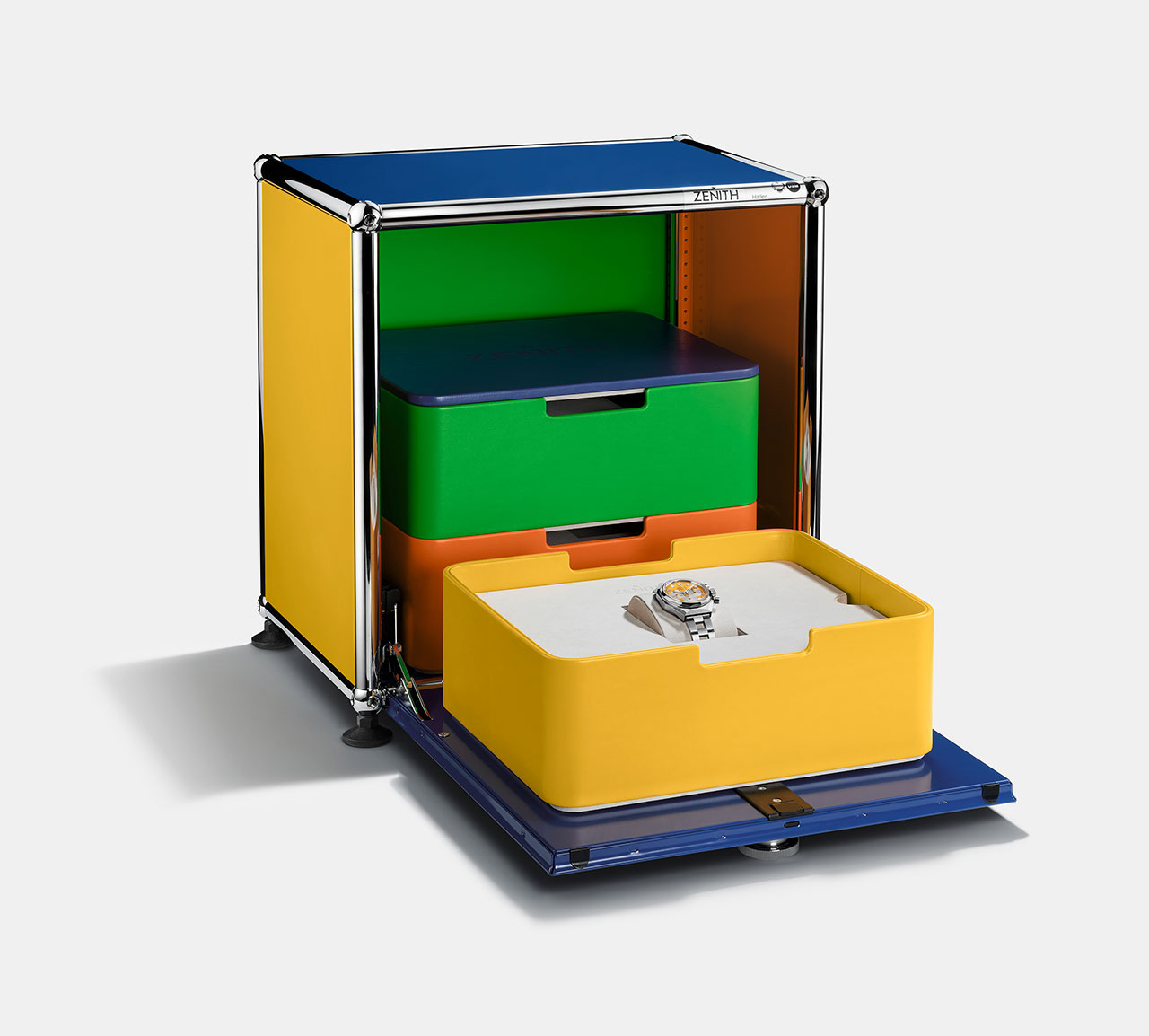 “This partnership unites the excellence of Swiss design and horology, embodying a mutual appreciation for enduring, modern aesthetics,” said Benoit de Clerck, CEO of ZENITH. “The modular design of USM Haller, celebrated for its functional beauty, resonates with our own dedication to craftsmanship in watchmaking.”