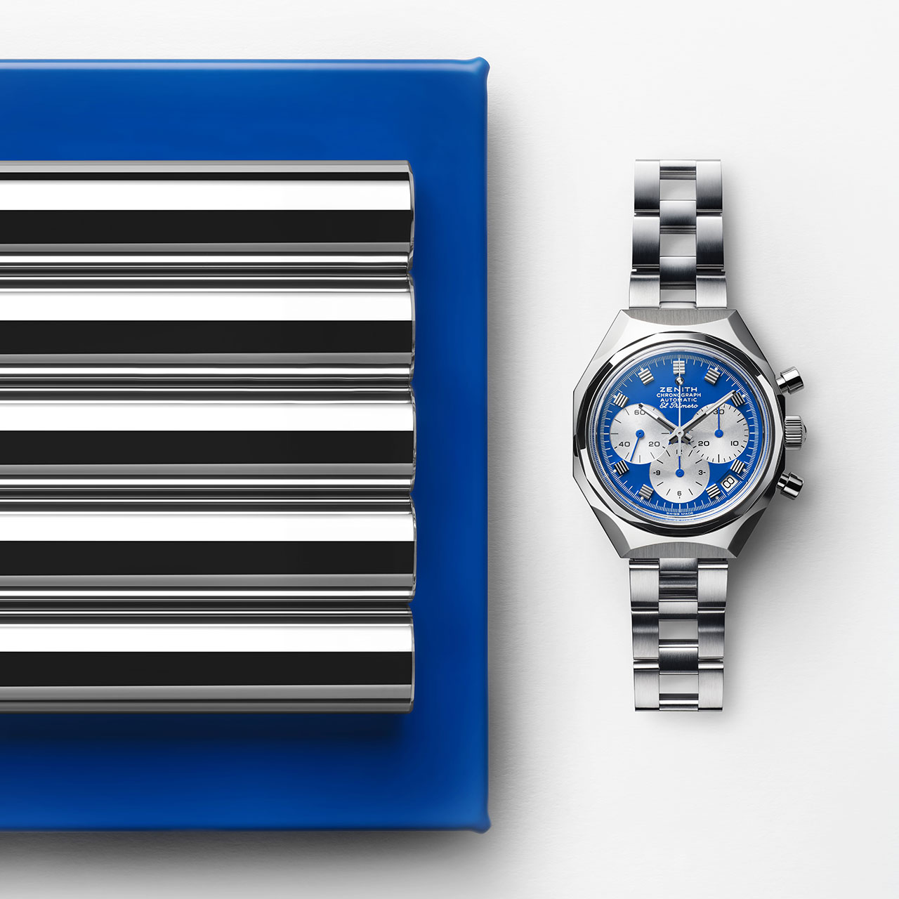 The concept of “Swiss design” connotes a degree of hyper-efficient modernism with a clarity of aesthetic supporting decipherable function. There’s room for experimentation and bold expression but within the constraints of a measured rationalism that seems to transcend time. Setting out to highlight this distinctive identity are luxury watchmaker ZENITH and high-end furniture producer USM Modular Furniture, joining forces in a colorful collaboration that gives nod to where their paths might have crossed in the 1960s – arguably one of the heydays of Swiss design. Rooted in the original 1969 ZENITH DEFY and reimagined as a chronograph infused with USM’s modular design language, the limited-edition capsule collection celebrates Swiss excellence and comes paired with a custom USM Haller chest created exclusively for the collaboration.