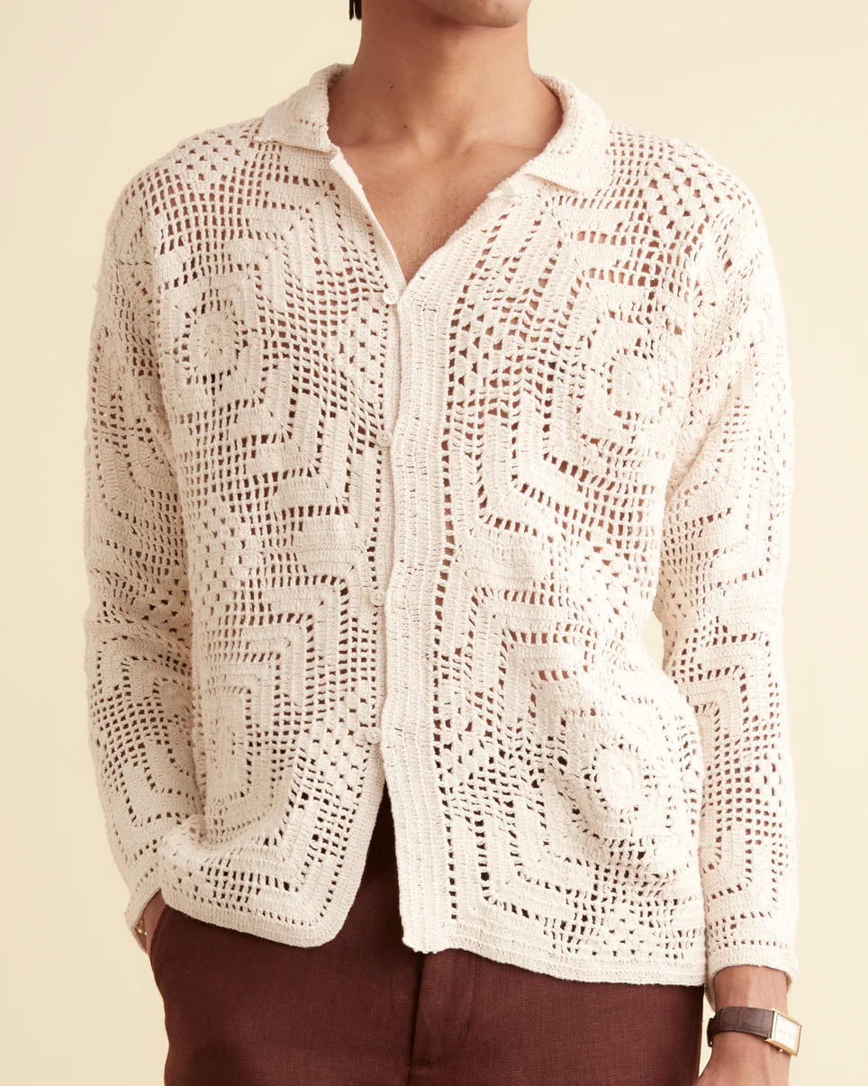 Bode is known for their vintage influences and hand-wrought details. From embroidery to vintage lace, they spare no expense in terms of handiwork, humanity and tradition at the forefront of their design style. In the wake of crochet influences taking over runways, ready to wear takes the stage: a handmade crochet top, inspired by lace from the 1920s, worked in cream to nicely show the contrast between yarn and skin. Since crochet cannot be made by machine, the care and love in its creation is naturally imbued, shining through no matter the color.