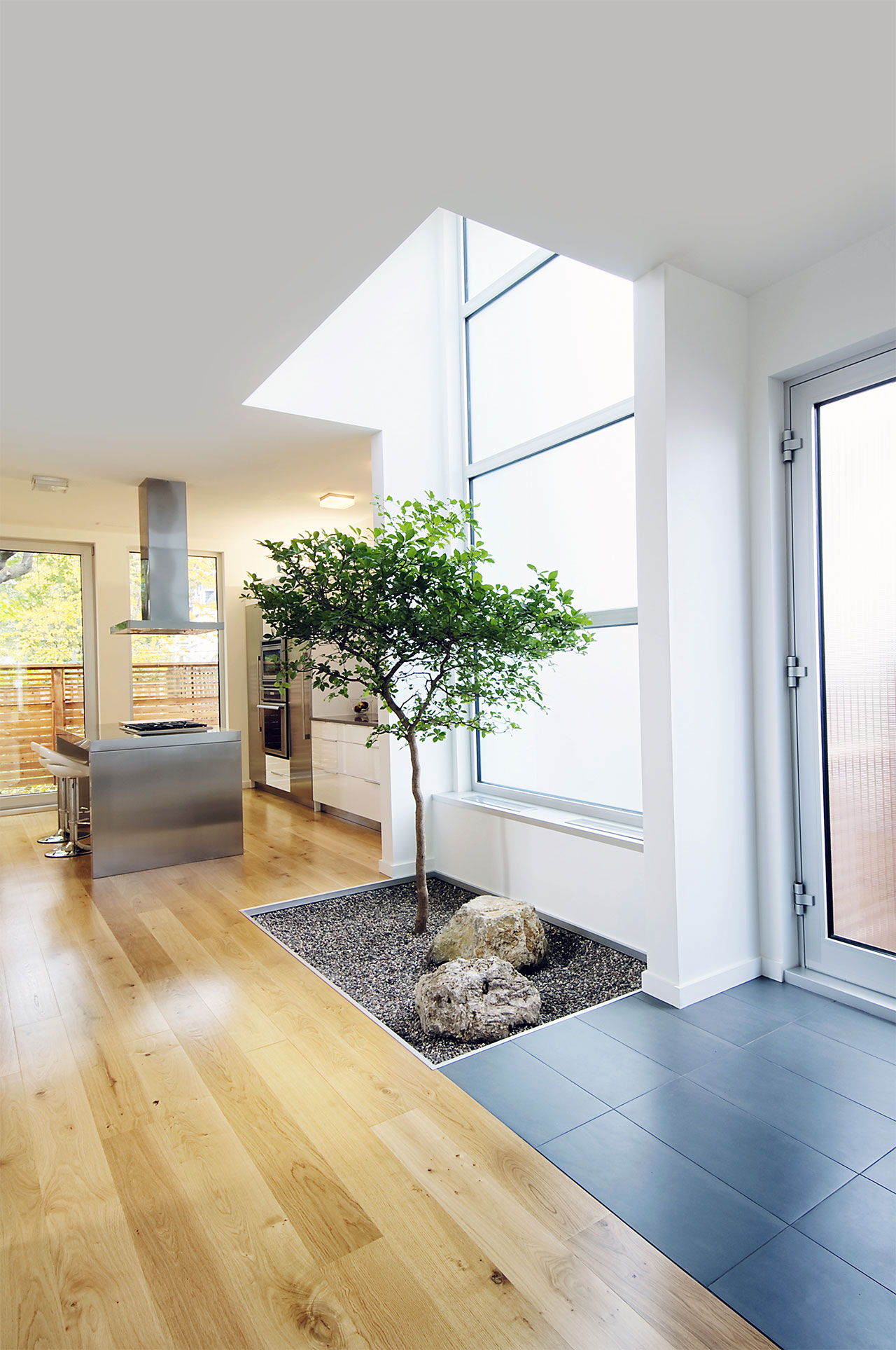 With Ottawa’s long winters, LineBox Studio brought the outdoors in with a tree garden placed right next to the front door of the Fold Place, welcoming the family and guests as the enter the space. Not only can the growing tree be seen as people come and go, it’s located so anyone in the kitchen has views of it while they cook.