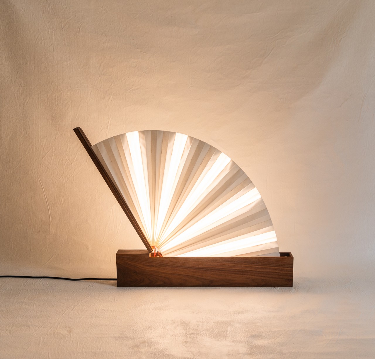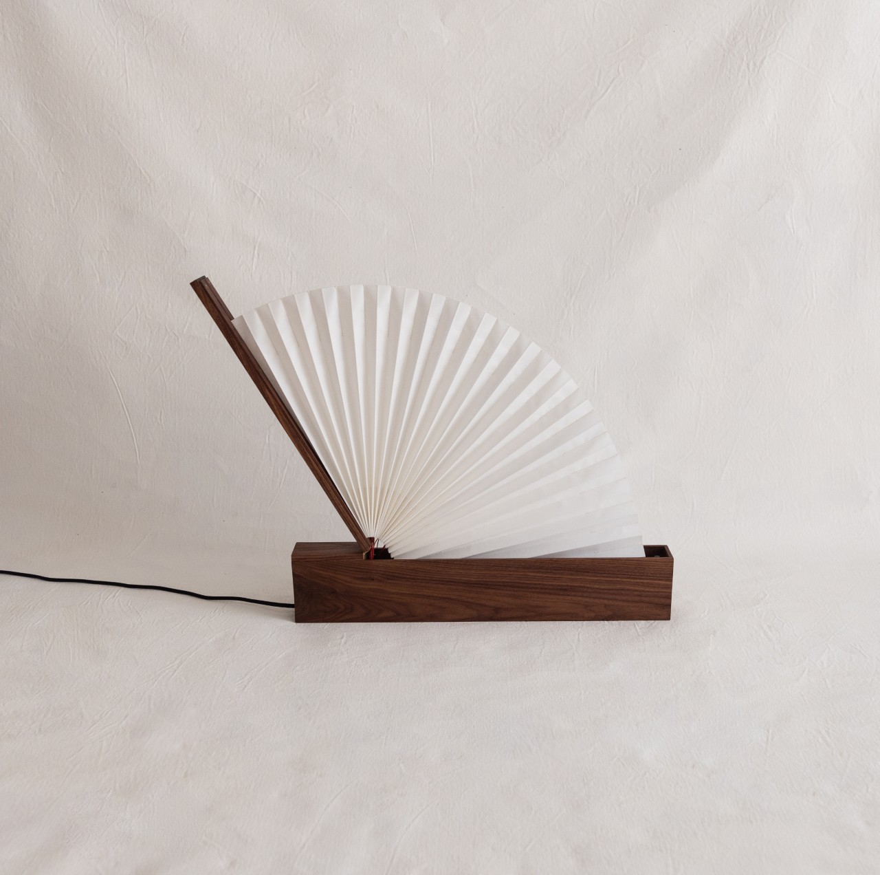 To do so, Wolfe turned to materials that embody both strength and lightness. Made by hand from reinforced Japanese paper and walnut, the Sail Light balances delicacy with structure. When closed, it appears as nothing more than a refined walnut box – understated and serene. But as the lid lifts, the pleated sail unfurls, revealing a sculptural light that softly transforms the space around it.